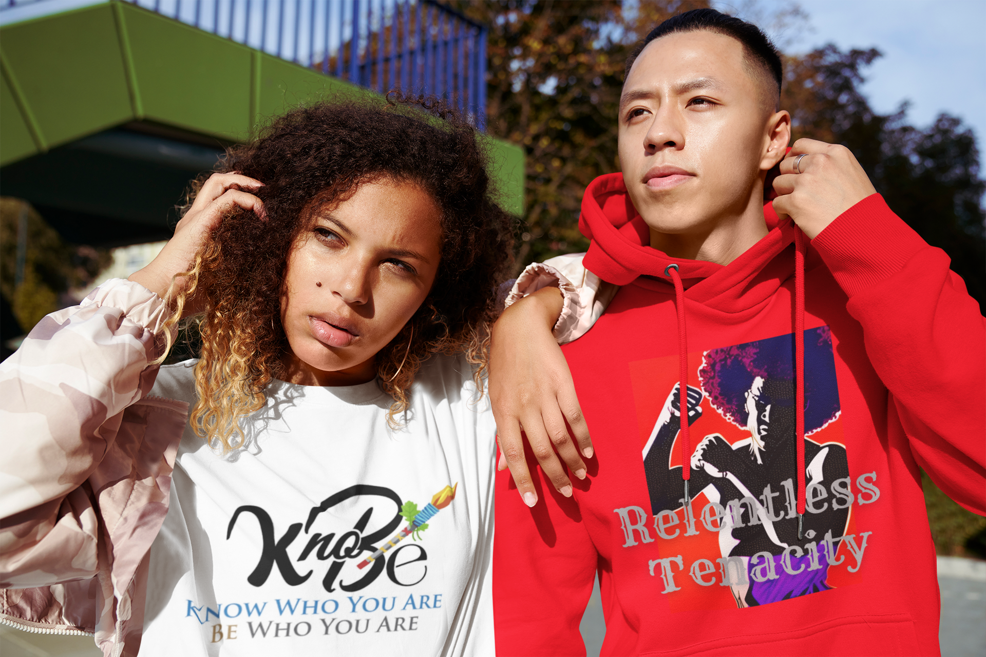 "Stand out with unique designs, embrace your individuality, and spread inspiration wherever you go with our empowering clothing that encourages you to 'Know Who You Are, Be Who You Are.'"!